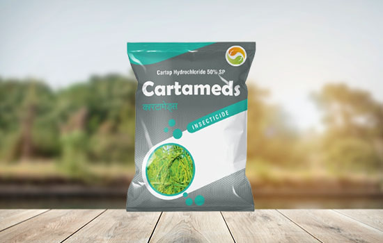 Cartameds ( Cartap Hydrochloride 50% SP) is a analogue of nereistoxin group the natural toxin. It controls three stages of insect i.e Eggs, Larvae and Adults. It has long residual bio-efficacy, but safer to mammals, birds, etc. Nicotinergic acetylcholine blocker, reason paralysis by blocking cholinergic transmissions in the central nervous systems of insects.